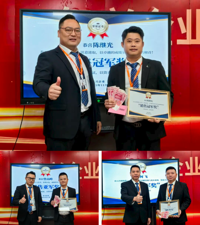 大会对11月销售工作中表现卓越的个人与团队进行了集中表彰。奖项涵盖销售开拓、销售业绩、团队协作及个人进步等多个维度。其