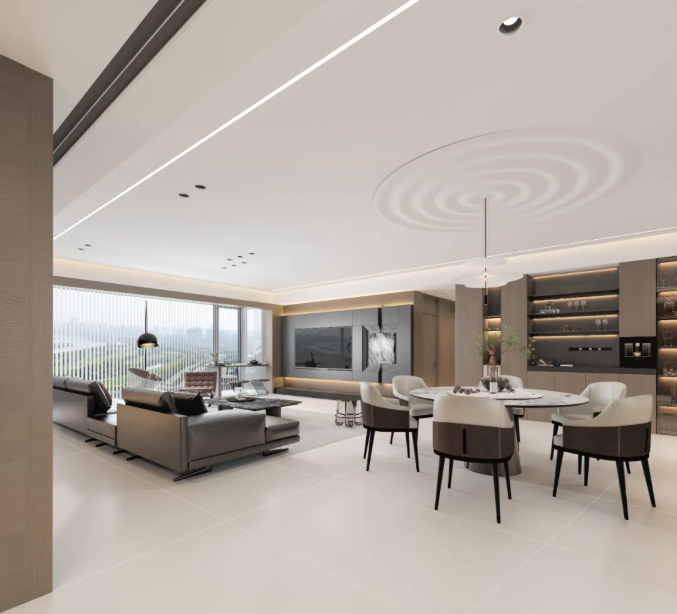如月华流淌过静谧湖面,漾开圈圈温柔的涟漪。淡雅的米黄底色,为空间披上一层永不落幕的宁静光晕。